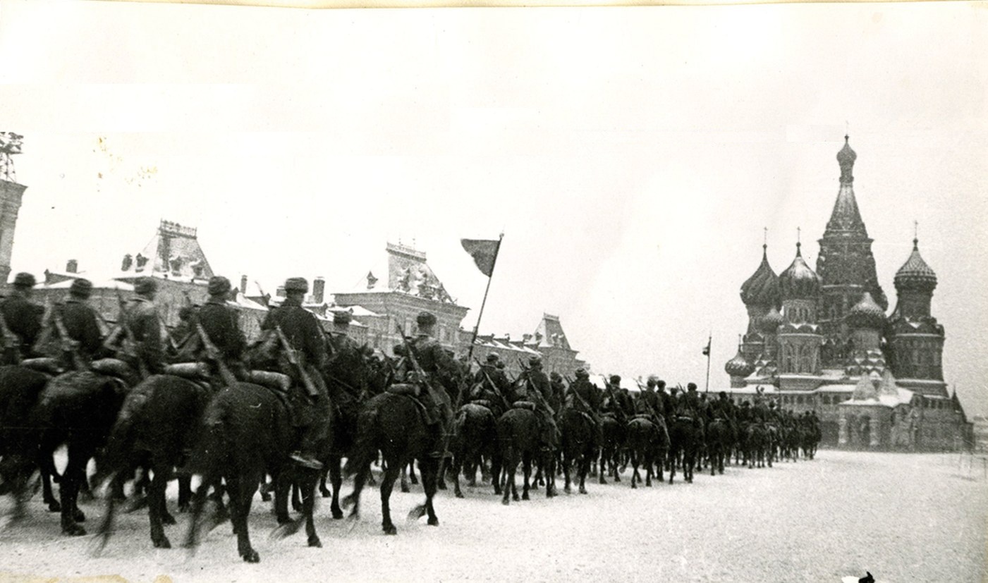 | The Red Army soldiers dressed in winter hats,production of this hats was canceled in July 1940, and armed with machine guns of the Old English "Lewis" imported to Russia in 1917. |